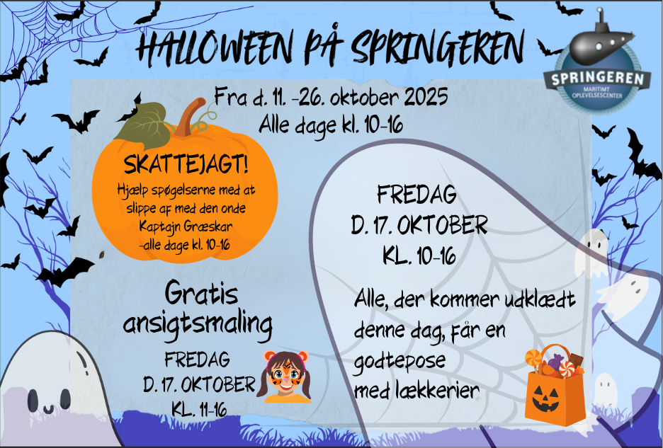 Springeren er et maritimt museum og oplevelsescenter i Aalborg. Her kan du gå ombord i ubåden Springeren, sejle en tur i Aalborg Minimarina, gå på opdagelse i vores enorme samling af modelskibe, der fortæller historien om Aalborgs søfartshistorie, og meget, meget mere. Velkommen ombord!